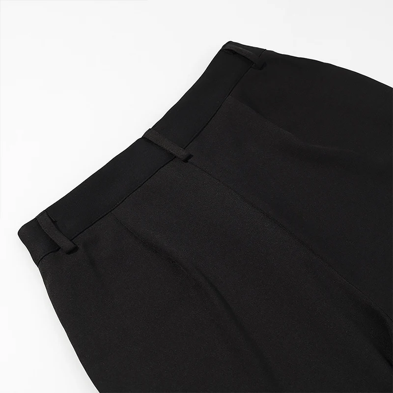 An ode to British tailoring heritage, The Savile Noir embodies quiet authority and timeless refinement. With its sculpted high waist and fluid wide-leg silhouette, it moves with effortless grace while maintaining a commanding presence. Crafted in deep noir, this piece channels understated luxury — designed for the woman who values precision, power, and impeccable elegance.